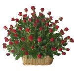 Arreglo con 150 rosas rojas importadas y follaje verde.