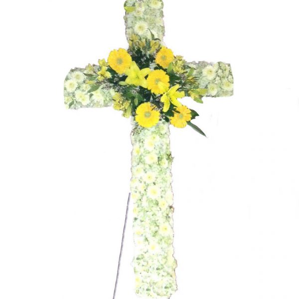Manto Especial con 24 claveles o rosas blancas, astromelias blancas y follaje verde.
