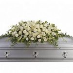 Manto Especial con 48 rosas blancas, astromelias y follaje verde.
