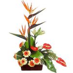 Arreglo con 7 gerberas. 3 anturios, 1 lilium, 3 esterlicias y follaje verde.