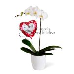 • Planta de Orquídea (color según Stock disponible) presentado en una base, decorado con tela.