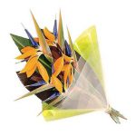 Ramo de 6 esterlicias, hoja de palmera y envuelto en celofán y lazo.
